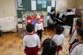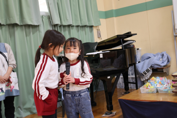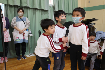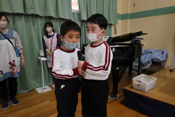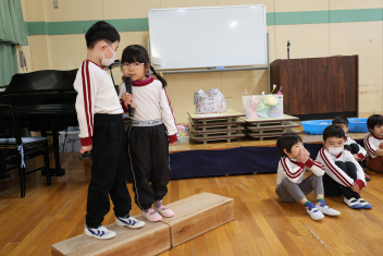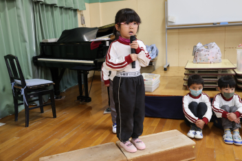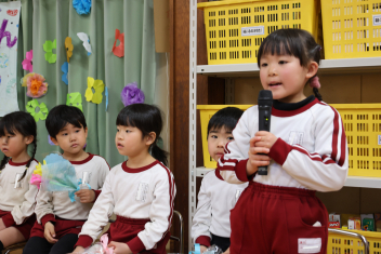 年中さんが、木曜日に行うお別れの会に向けて進行や出し物の練習を頑張っています。頼もしくなってきました、お別れ会が楽しみです。