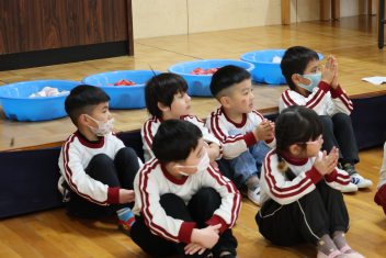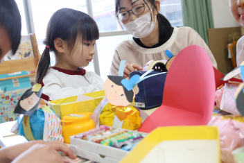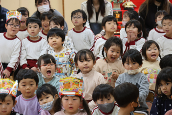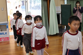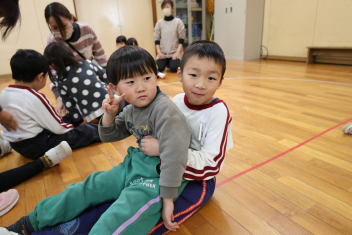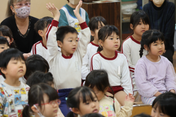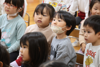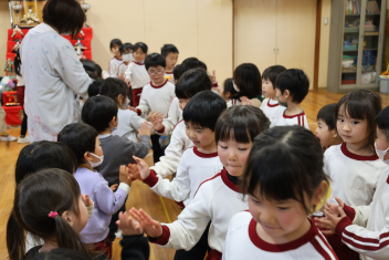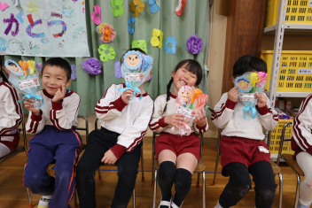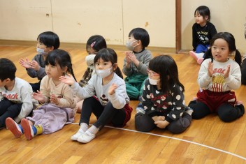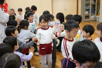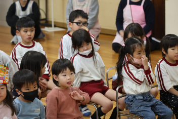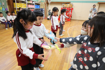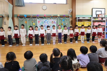 • 年長さんとのお別れの会を行いました。年中さんが、進行役を務め、心温まる会になりました。年中さんや年少さんからのお楽しみやプレゼントに年長さんも笑顔いっぱいでした。みんな大きくなったなあと実感した会でもありました。年中さん、頑張ったね!