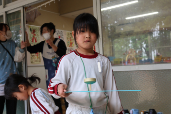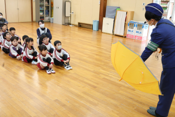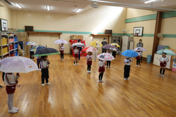 慣れない傘の開閉の練習をしました。小学生になったら、自分で傘を閉じられることが大事ですね。