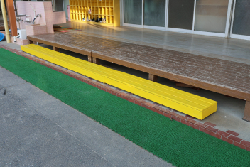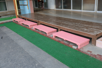 月曜日に登園されて、幼稚園の雰囲気が少し変わったことに気づかれたことと思います。そうなんです。テラスの前の踏み台がかわいらしくきれいになりました。保護者方にお願いして、汚れを落としてもらい、学年色に塗っていただきました。ありがとうございました。
