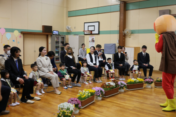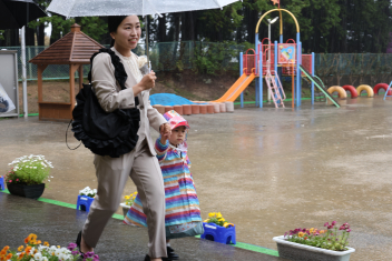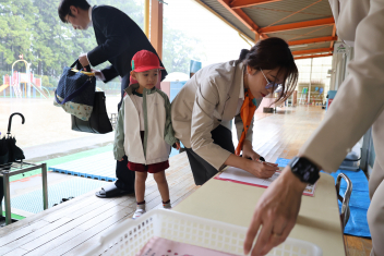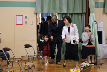 本日、浜松市立赤佐幼稚園入園式を行いました。大雨が降り、雷が鳴り、春の嵐を思わせるほどの天候でしたが、新入園児7名は、おうちの方に手を引かれ元気よく登園してくれました。