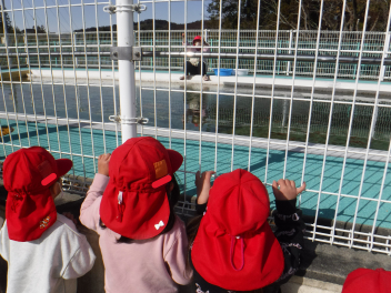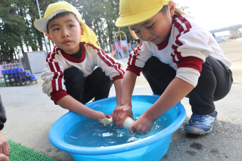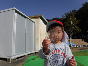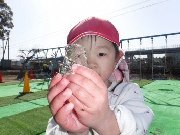 今朝の一段と気温が下がりました。昨晩、赤佐地区は雪が舞ったようで、園庭には溶けずに残った雪があちらこちらに見られました。氷もいっぱいでした。