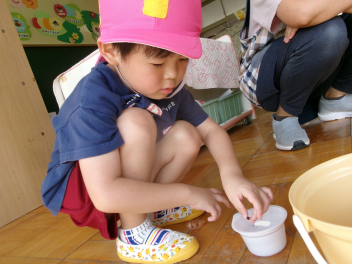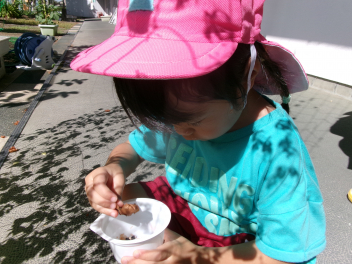 とった種を数えて、たくさんとれたことに満足している子供たち!!家に持ち帰る子もいれば、種を転がしたり、箱に入れて音を楽しんだりして遊んでいる子も!!