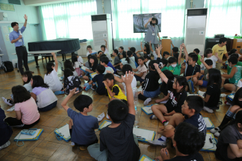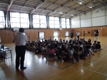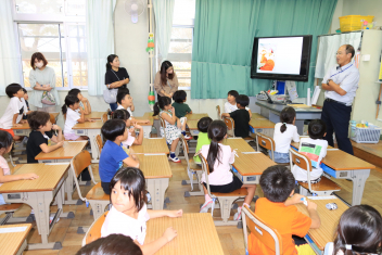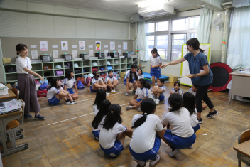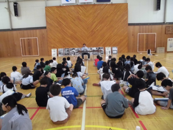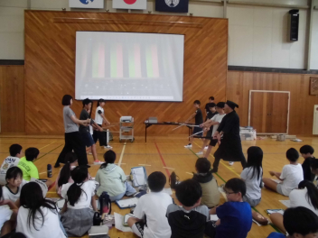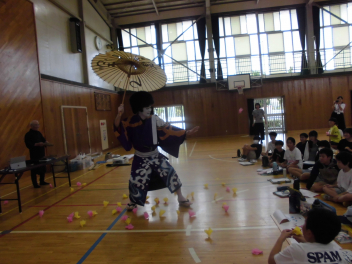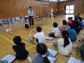 • 本日の講師は雄踏歌舞伎保存会の坂田さんでした。地域の伝統文化を未来に伝えていこうとうする熱意から、子供たちはたくさん学ばせていただいたようです。スペシャルゲストは「日本左衛門」。正体は内緒ですが、子供たちは大興奮でした。