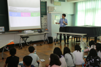 • SNSはとても便利で楽しいもの。でも使い方に注意しないと危険なものでもあります。今日は、講師を招いて情報モラルについて5年生が学習しました。