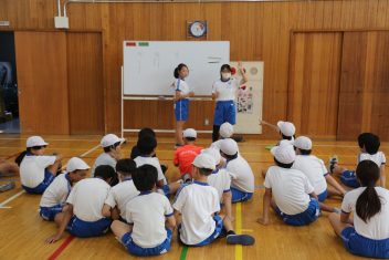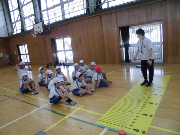 • 今週は新体力テスト週間でした。昨年の自分の記録を越えようと、一人一人がめあてをもって取り組みました。一年生は、初めての新体力テストでした。6年生に手伝ってもらいながら、取り組みました。