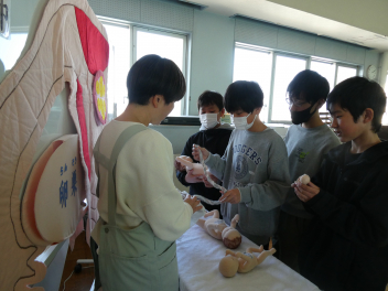 • 助産師さんを講師として、6年生が「いのちの授業」を行いました。男女の体の違い・受精のしかた・胎児や新生児の発育など、大切なことをたくさん学びました。自分の命がたくさんの人に支えられていることに気づきました。
