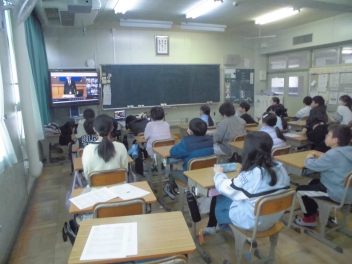 • 今日の昼休みは、リモートでの全校集会が開かれました。「全国いじめ問題子供サミット」に参加した代表児童の発表と、「心を行動で表そう」という校長先生のお話から、友達を思いやる気持ちが高まりました。