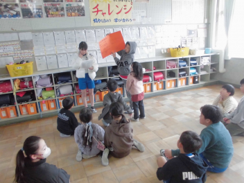 • 今日の昼休みは、たてわりグループごとに遊びました。6年生が考えた遊びで、1~5年生が楽しく遊びました。インフルエンザの流行などで、今まで中止されることが多かったので、今日は待ちに待った縦割り遊びでした。
