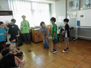 • 本日の講師は雄踏歌舞伎保存会の坂田さんでした。地域の伝統文化を未来に伝えていこうとうする熱意から、子供たちはたくさん学ばせていただいたようです。スペシャルゲストは「日本左衛門」。正体は内緒ですが、子供たちは大興奮でした。