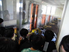 西部清掃工場では、実際に集められたごみがピットに入る様子や実際にごみが処理される様子を見学しました。また、処理されたごみが、「スラグ」と呼ばれる資材として道路やコンクリートに再利用されたり、発生する熱が発電に使われたり、近隣のToBiOの温水プールのために再利用されたりすることも学びました。