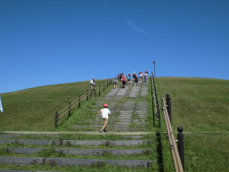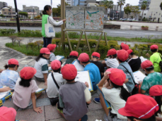 清掃工場の見学終了後は、遠州灘海浜公園に向かいました。昼食だけが目的ではなく、社会科「自然災害からくらしを守る」の学習で知った「津波避難マウンド」を見学することも目的の一つでした。