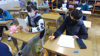 調理の後、自分で作ったものを食べてみて、「自分で作ったからよりおいしく感じる。」という感想や「ゆで時間が長すぎて、ボロっとなってしまうから、次は気を付けたい。」という反省などが出てきました。こういった思いが家庭での実践につながるよう、来週は実習のまとめをしていきます。