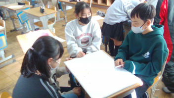 教室では、新年ということですごろく遊びをしました。冬休みの思い出を語り合ったり、マスに書かれた指令をみんなでクリアしたりして盛り上がりました。