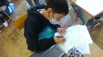 別の時間には、総合的な学習で考えてきた生き方についてのレポートを推敲しました。今後、このレポートをもとにあらっこ参観会の発表原稿を作成していきます。