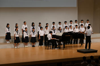 3番目は3組の「怪獣のバラード」。曲想にも合う1年生らしい元気いっぱいの歌声で、聴いている人も元気の出る合唱でした。最後の「ヤーッ!」も揃っていました。