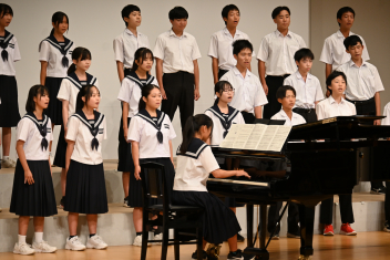 トップバッターは2組の「明日へ」。初めての合唱コンクール。緊張もあったと思いますが、サビのリズムをしっかりと生かした躍動感のある歌唱でした。