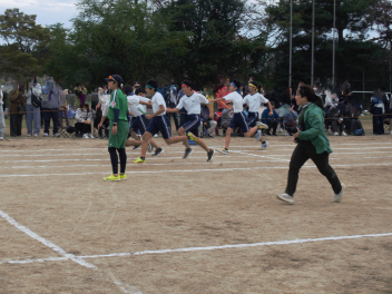 体育祭の最初の競技は徒競走。レースが進むごとに応援にも熱が入っていきました。