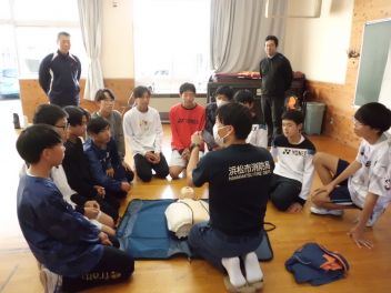 講師は、さつきの森クリニックの杉山先生、浜松医科大学医学部付属病院の中村先生、そして赤佐消防署の救急隊員の皆さんでした。ありがとうございました。