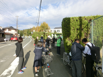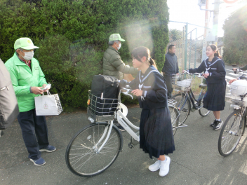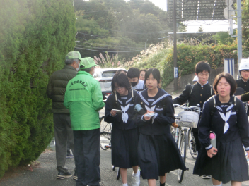 地域の方や学年の先生方のあいさつに、生徒たちの表情にはいつも以上に笑顔が見られました。