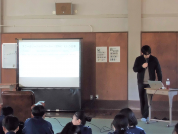 • 1年生は、1月20日(火)6時間目の総合的な学習の時間に、本校SSWの鈴木さんから福祉についての講話を聴きました。