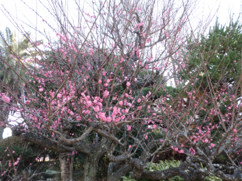 校庭の梅の花が咲き、綺麗です。
