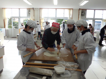 そばを食べるまでには、「こね」「のばす」「きる」「ゆでる」という工程を絶え間なく続けなければならないのでとても根気のいる作業でした。しかし、皆で協力して完成することができました。