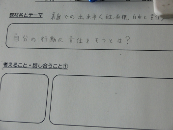 この時間の問いは、「自分の行動に責任をもつとは、どういうことだろうか」でした。