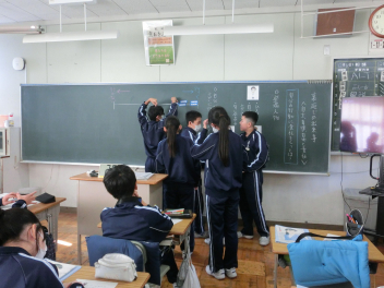 また、来年度に向けて、学校評価アンケートの結果を伝え、委員の皆様からご意見をいただくとともに、中学生と地域の関わりについて意見交換をしました。