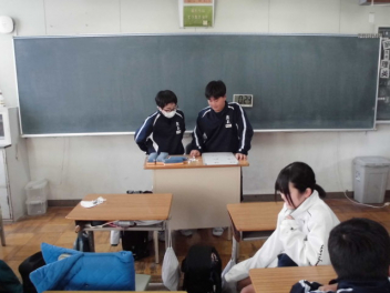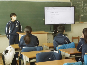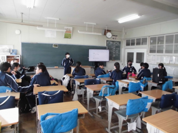 • 1年生は、1月20日(火)6時間目の総合的な学習の時間に、本校SSWの鈴木さんから福祉についての講話を聴きました。