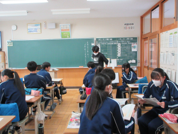 生徒会本部役員が進行をしてくれ、各学級で話し合いをしました。