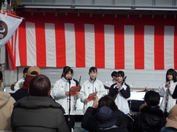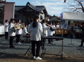 庚申寺まつりで吹奏楽部が演奏を披露しました。