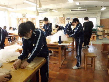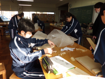 立体感を出すためには、どこを彫ればいいか、どこを強調させて表現するかなど子供たちが各自で考えながら一生懸命に製作に取り組んでいました。
