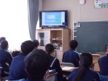 生活委員がSNSのマナーについて、パワーポイントを使いながら説明してくれました。