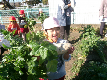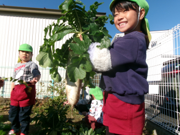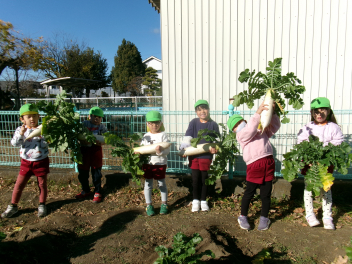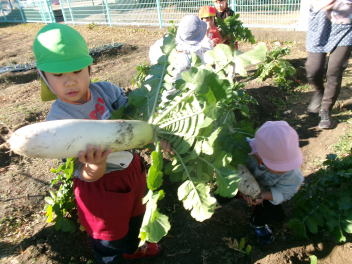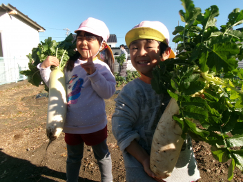 みんなで畑の大根を収穫しました!laugh今年は大きくて立派な大根がたくさんとれましたね!laugh