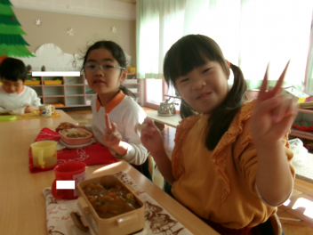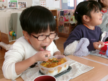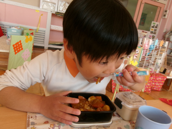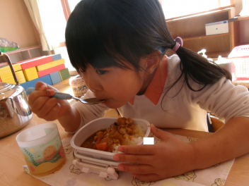 • 畑で収穫した大根やサツマイモが入ったカレーをみんなでいただきましたlaugh自分たちで一生懸命育てた野菜の入ったカレーの味は最高でしたね!