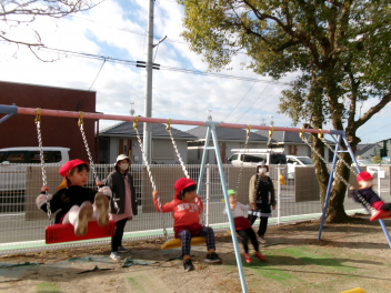 • 年長きく組さんは、有玉小学校へ遊びに出掛けましたlaugh園庭よりも何倍も広い運動場で思いっきり走ったり、大きな遊具で遊んだりしました。時間を忘れて遊びに没頭できたようですねlaugh