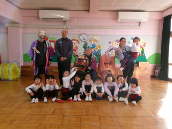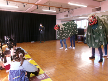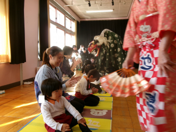 • 今年も有玉幼稚園に獅子舞がやってきました!laugh勇壮な太鼓や笛の音に合わせて、獅子舞を披露してくださいました。有玉獅子舞保存会の皆様、子供たちのためにありがとうございました!