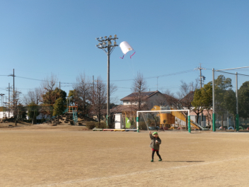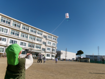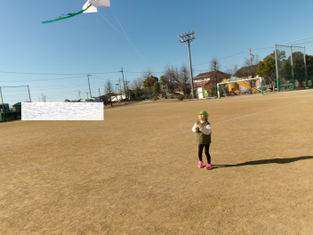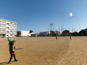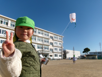 子供たちは凧あげに夢中でした!年長さんは有玉小学校へ行って凧あげをしましたlaugh