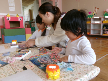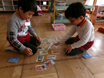 年長さんは、積志地区の「積志カルタ」を楽しんでいました。積志地区の歴史に関する様々なことを学ぶことができましたねlaugh