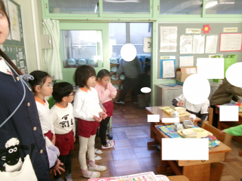 年長さんが学校探検に行ってきました。授業を見せていただいたり、給食の配膳を見せていただいたりしました。小学校での生活の様子が少しずつイメージできたようです。有玉小学校の先生方、御協力ありがとうございました。laugh