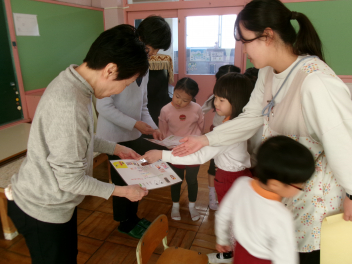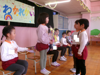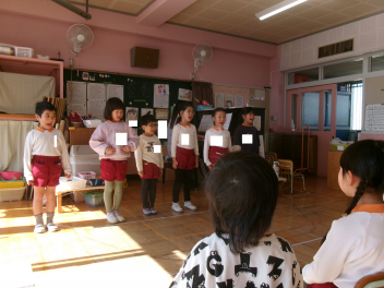 年中さんが中心となり、先日欠席した子のために、卒園児のお別れ会を開催してくれましたlaugh優しい気持ちに包まれた、心がほっこりする会となりましたね。