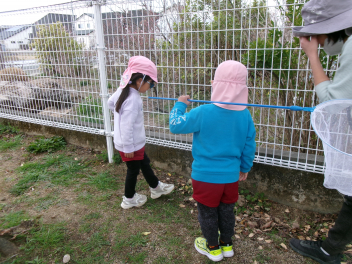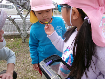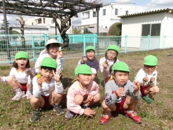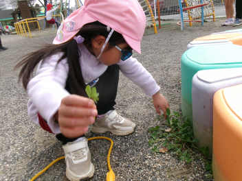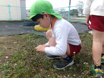 園庭のあちらこちらに春の草花が芽を出していました。子供たちは目を輝かせて春みつけを楽しむことができました。