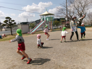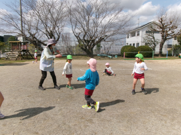 • 少しずつ春らしく、温かい日が多くなってきました。子供たちは汗をかきながら友達や先生との遊びに夢中になっていましたlaugh