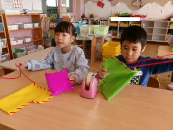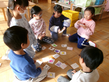 • 年長きく組さんは、自分たちでカルタを作り、とっても楽しそうに遊んでいました!