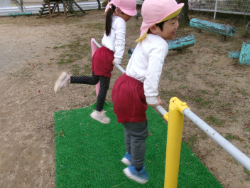 • 年長きく組さんは、有玉小学校へ遊びに出掛けましたlaugh園庭よりも何倍も広い運動場で思いっきり走ったり、大きな遊具で遊んだりしました。時間を忘れて遊びに没頭できたようですねlaugh