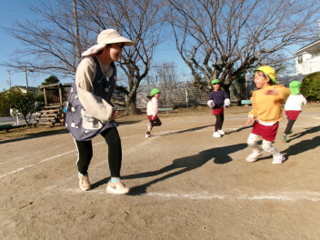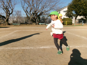 年長さんは、寒さに負けず、先生やお友達と元気いっぱい追いかけっこをしましたね!