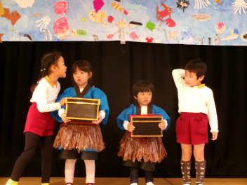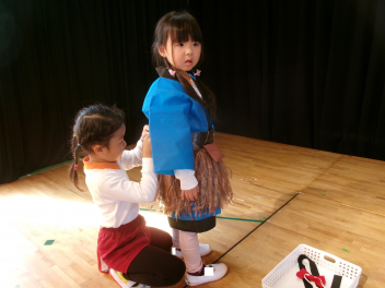 • 他の学年の発表に憧れて、みんなで発表会ごっこをしましたlaughせりふや動きを優しく丁寧に教える姿がとっても微笑ましかったですlaugh