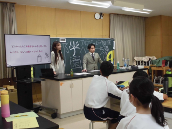 11月6日、浜松医科大学の金木麻友子先生をお招きし、8年生を対象とした思春期教室が行われました。子供たちは、男女の体の仕組みなどについては学習していましたが、今回、産婦人科医の立場から、性感染症など思春期を迎えた子供たちに必要な内容を分かりやすく教えていただきました。皆、将来役に立つ内容だと真剣に話を聞く様子が見受けられました。