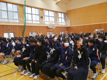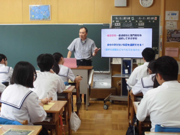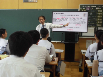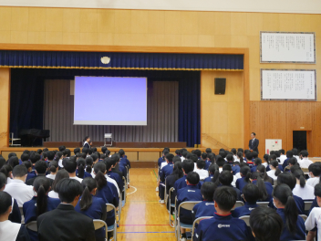 10月10日、9年生を対象とした公立高校の出前講座が行われました。1学期に行われた私立高校の出前講座に引き続き、第2弾です。それぞれの学校が、自校の特色や高校と中学との違いなど熱をもって伝えてくださり、子供たちも今後の進路選択に向け、真剣に耳を傾ける様子が見られました。